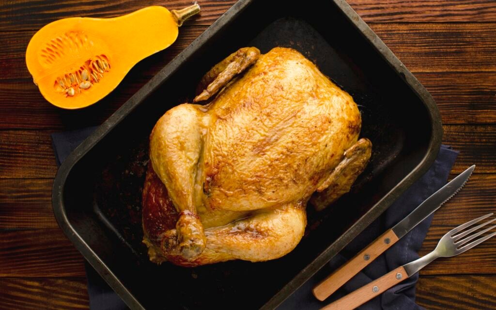 - Pollo asado lentamente. Conseguimos una piel dorada y crujiente, con una carne tierna que se deshace en la boca.